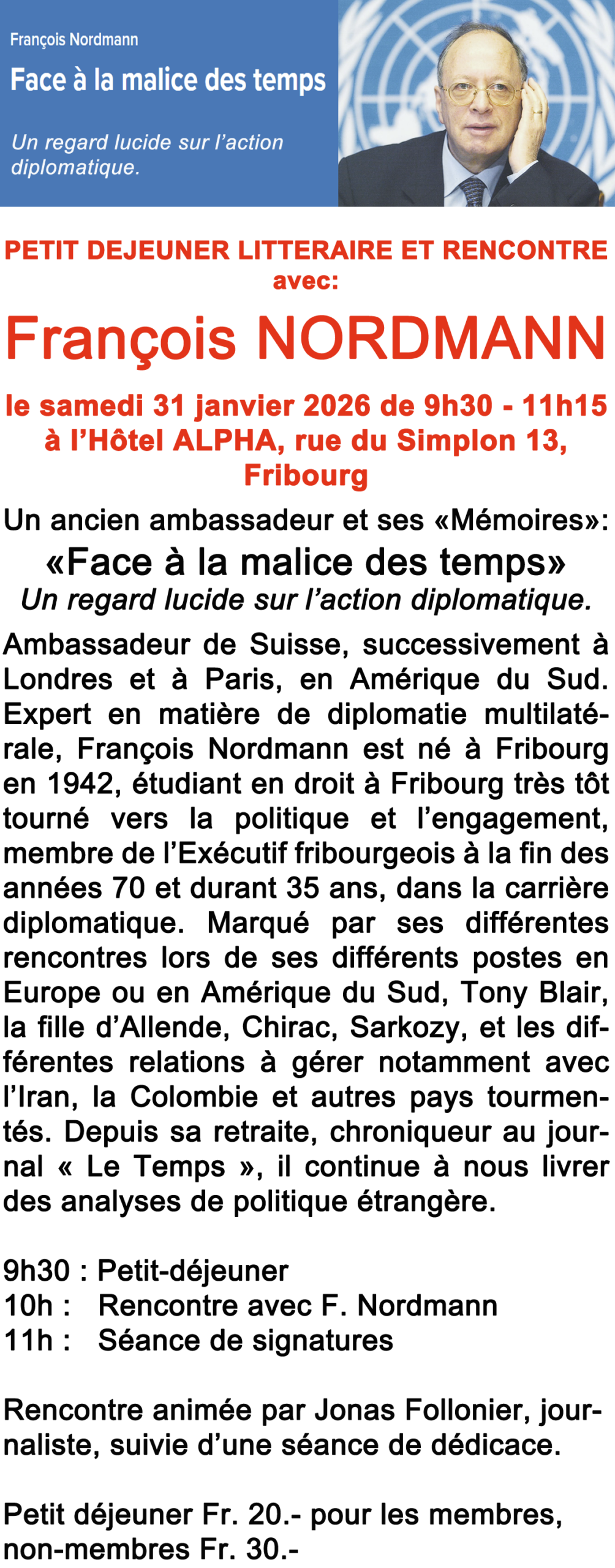 Fr. 10.- pour les non membres / étudiants gratuit
